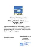 Zaświadczenie, że firma Budagros-Bis Sp. z o.o. jest autoryzowanym dealerem firmy EBARA Pompy Polska.