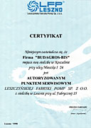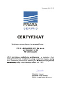 Zaświadczenie, że firma Budagros-Bis Sp. z o.o. posiada autoryzowany serwis firmy EBARA Pompy Polska.